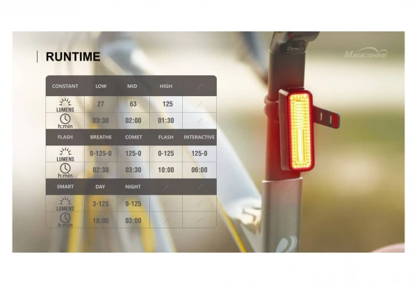 La Seemee 180 est équipée d’un capteur de mouvement, qui s’allume automatiquement lors du freinage. Mode basse consommation (automatique) pour prolonger efficacement la durée de fonctionnement.
