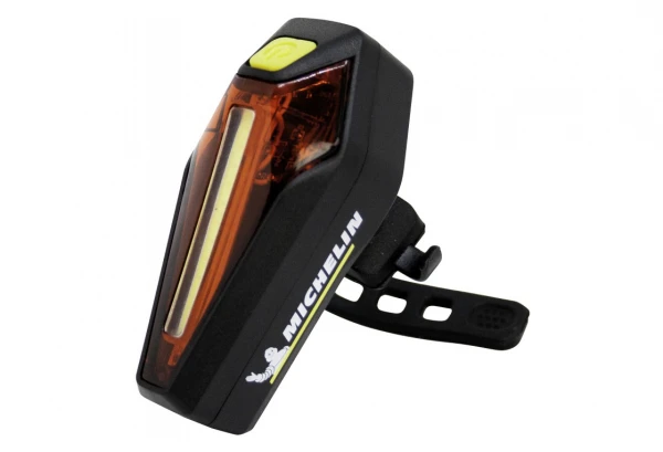 Eclairage de visibilité arrière Michelin, développé pour assurer la sécurité du cycliste. Plusieurs modes d’éclairage.