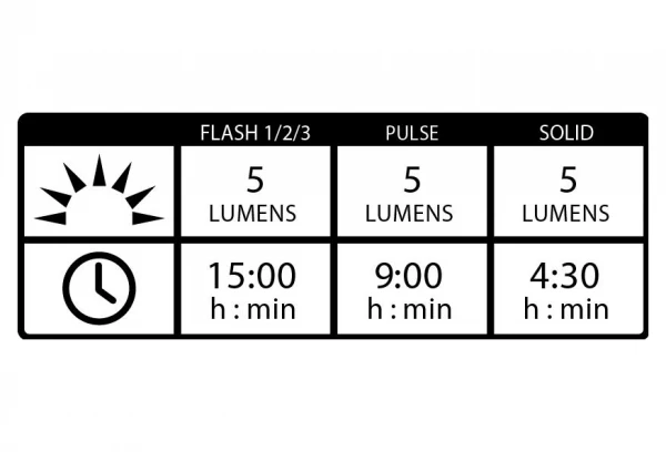 - Flux lumineux : 5 lumens.