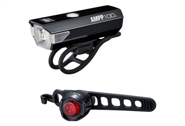 La paire d’éclairages Cateye AMPP100 & ORB Rechargeable est composée de l’éclairage avant Cateye AMPP100 et de l’éclairage arrière Cateye ORB Rechargeable.