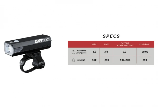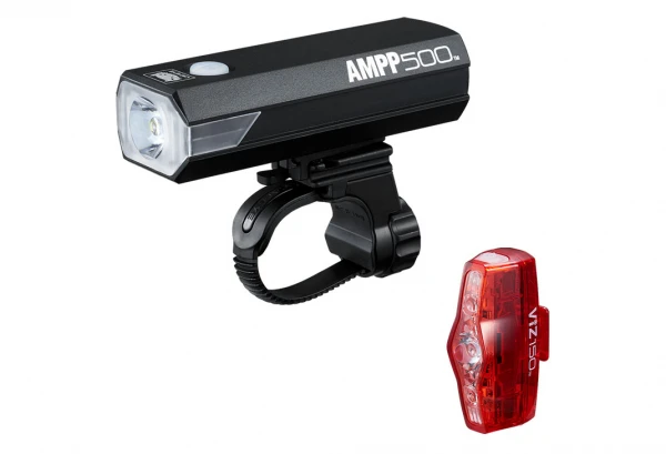 La paire d’éclairages Cateye AMPP500 & ViZ150 est composée de l’éclairage avant Cateye AMPP500 et de l’éclairage arrière Cateye ViZ150.