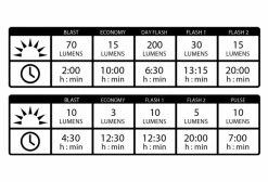 - 5 modes d’éclairages (Max, Min, Pulse, Flash, Eco Flash)
