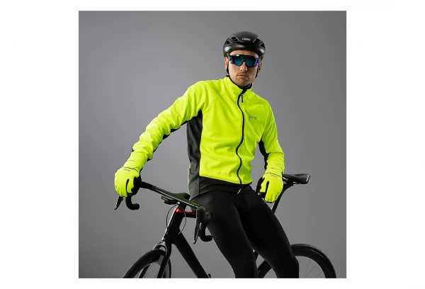Une veste soft shell doublée polaire, qui offre isolation et protection contre le vent quand on roule par temps froid. Conçue pour bien s’ajuster en position aérodynamique. Les logos GORE réfléchissants offrent plus de visibilité la nuit : idéal pour les cyclistes qui roulent aussi régulièrement pendant l’hiver.